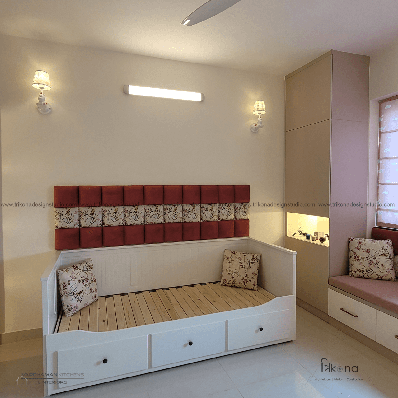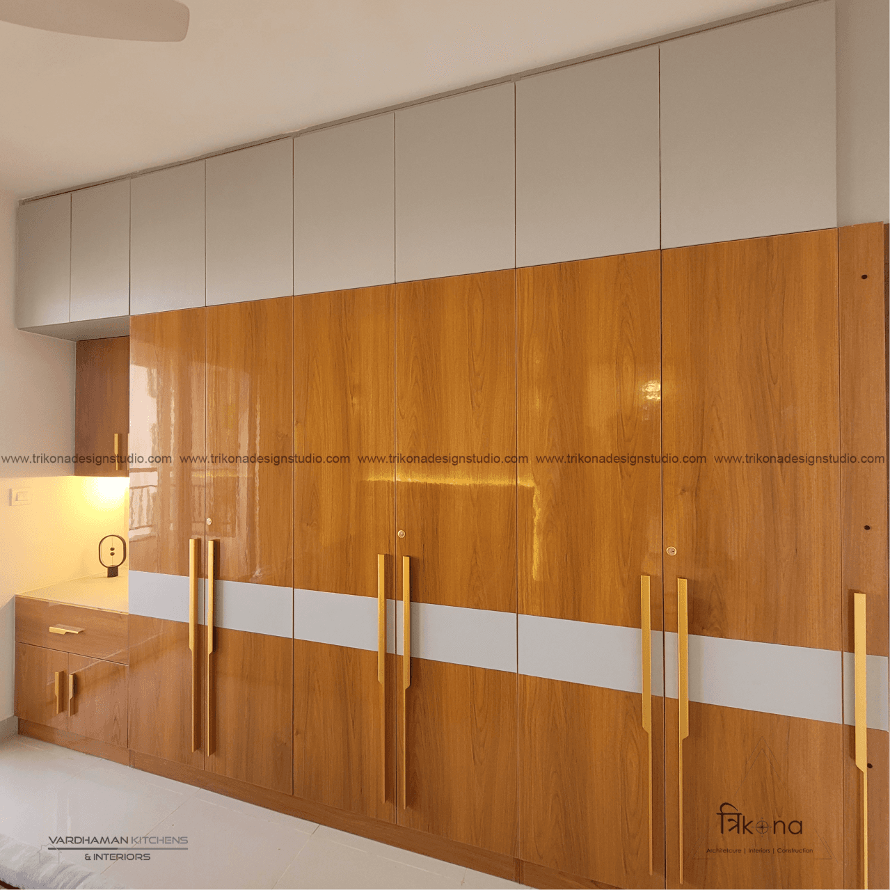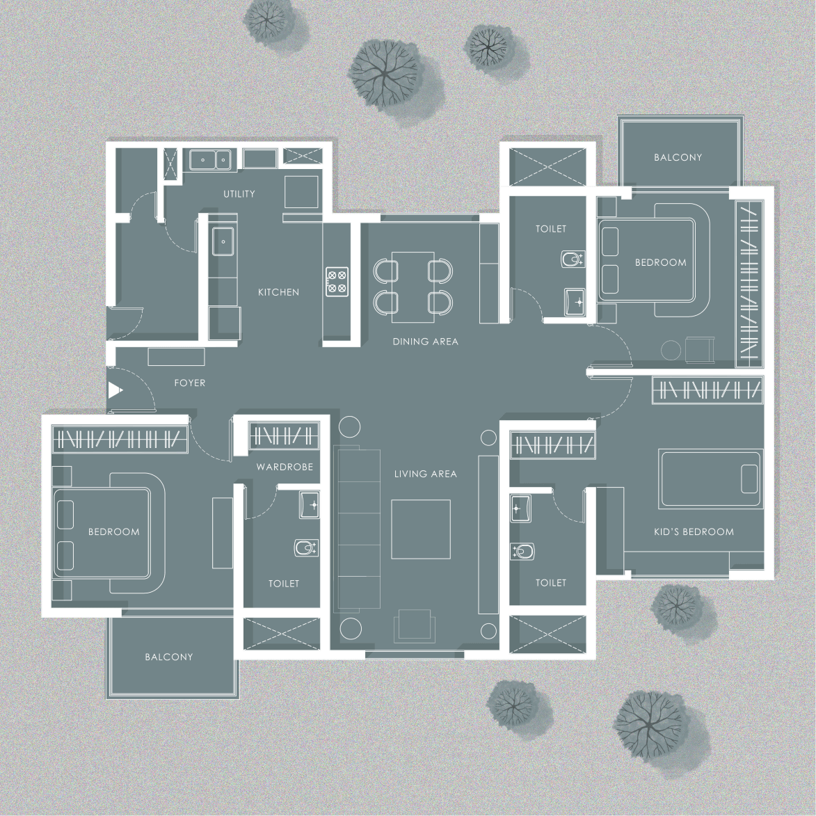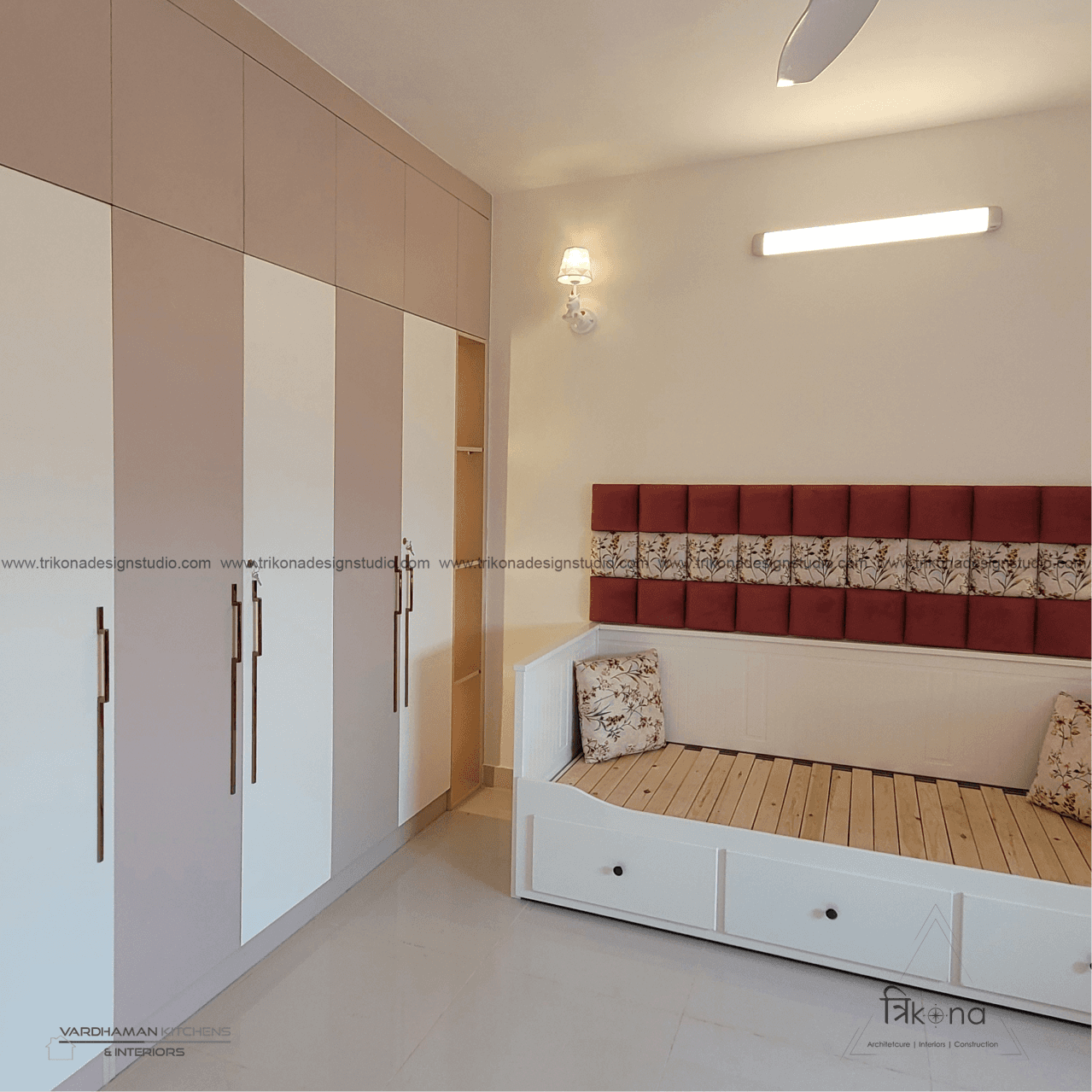 A stunning 3-bedroom apartment nestled in vibrant Bangalore. Embrace contemporary elegance in the living room adorned with French moldings and a chic cool blue couch. The dining area dazzles with a multifunctional crockery cum pooja unit. Experience culinary delights in the parallel kitchen, bathed in soothing beige tones, concealed by a sleek fluted sliding door with rose gold accents. Retreat to the master bedroom accented with rich browns, while the parents' bedroom exudes warmth with wooden accents. Let the kids' room enchant with soft pink hues.