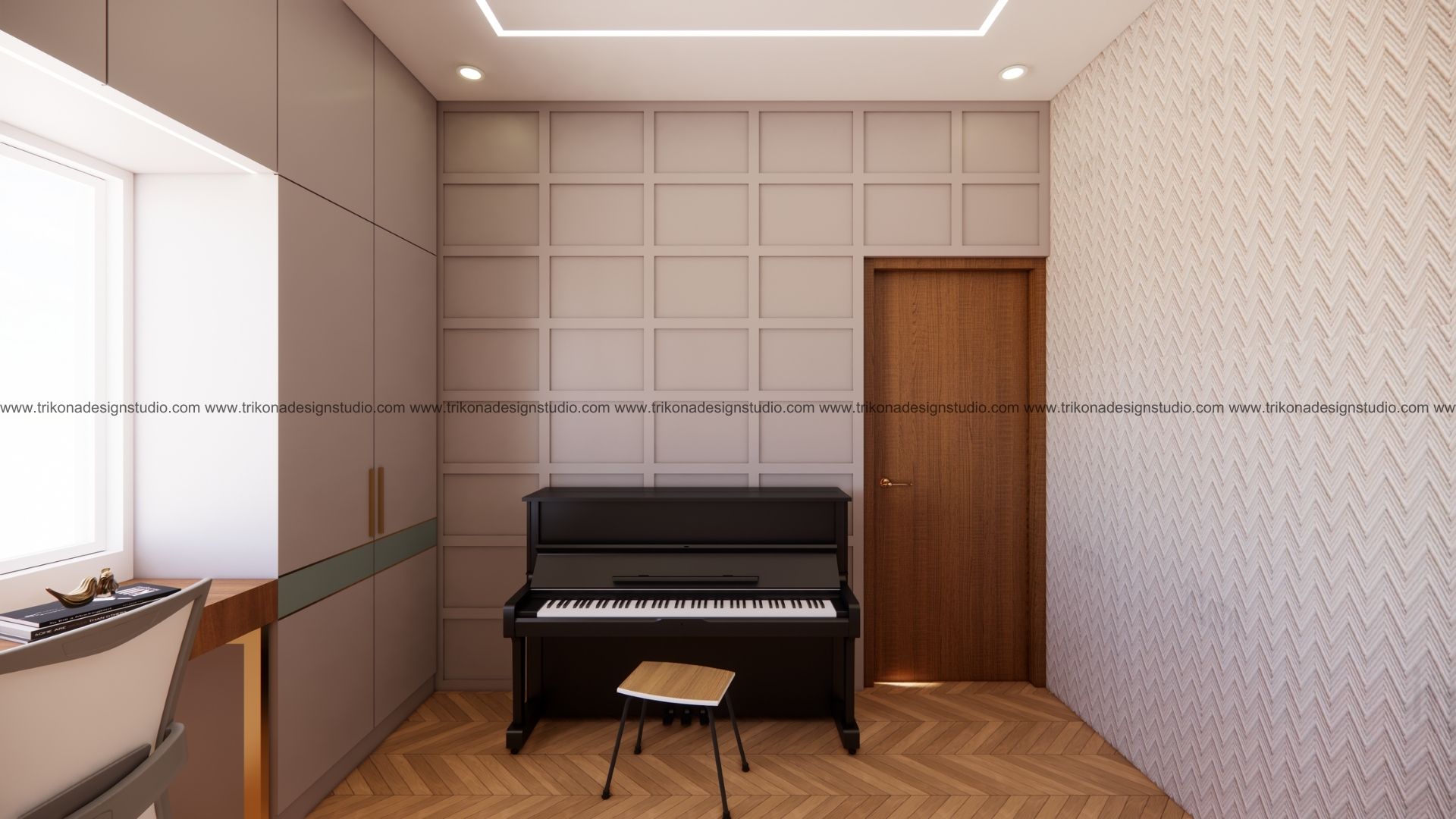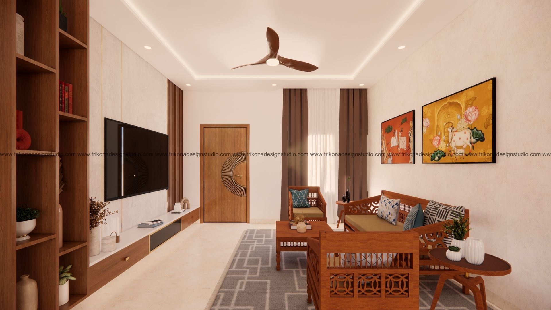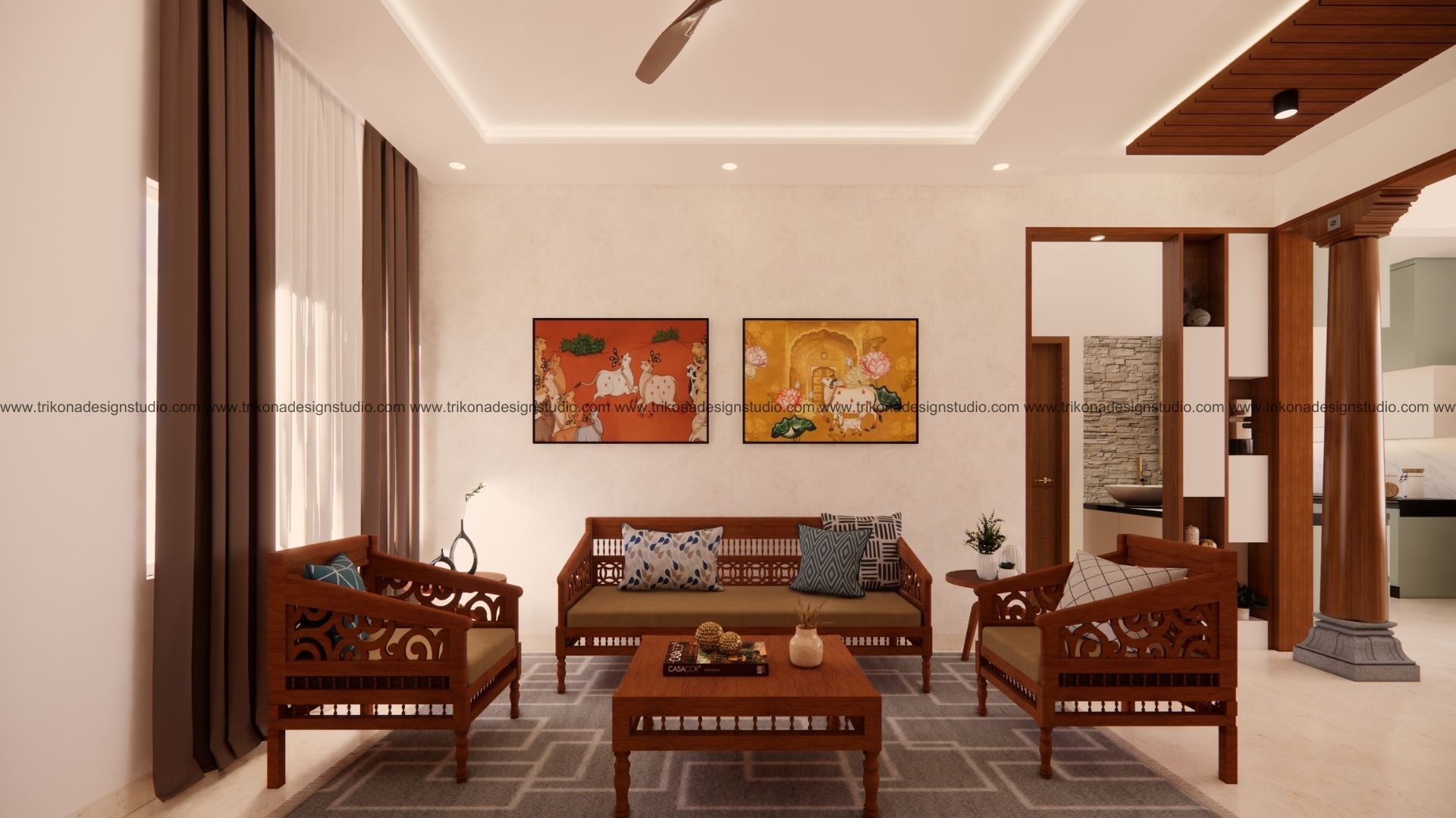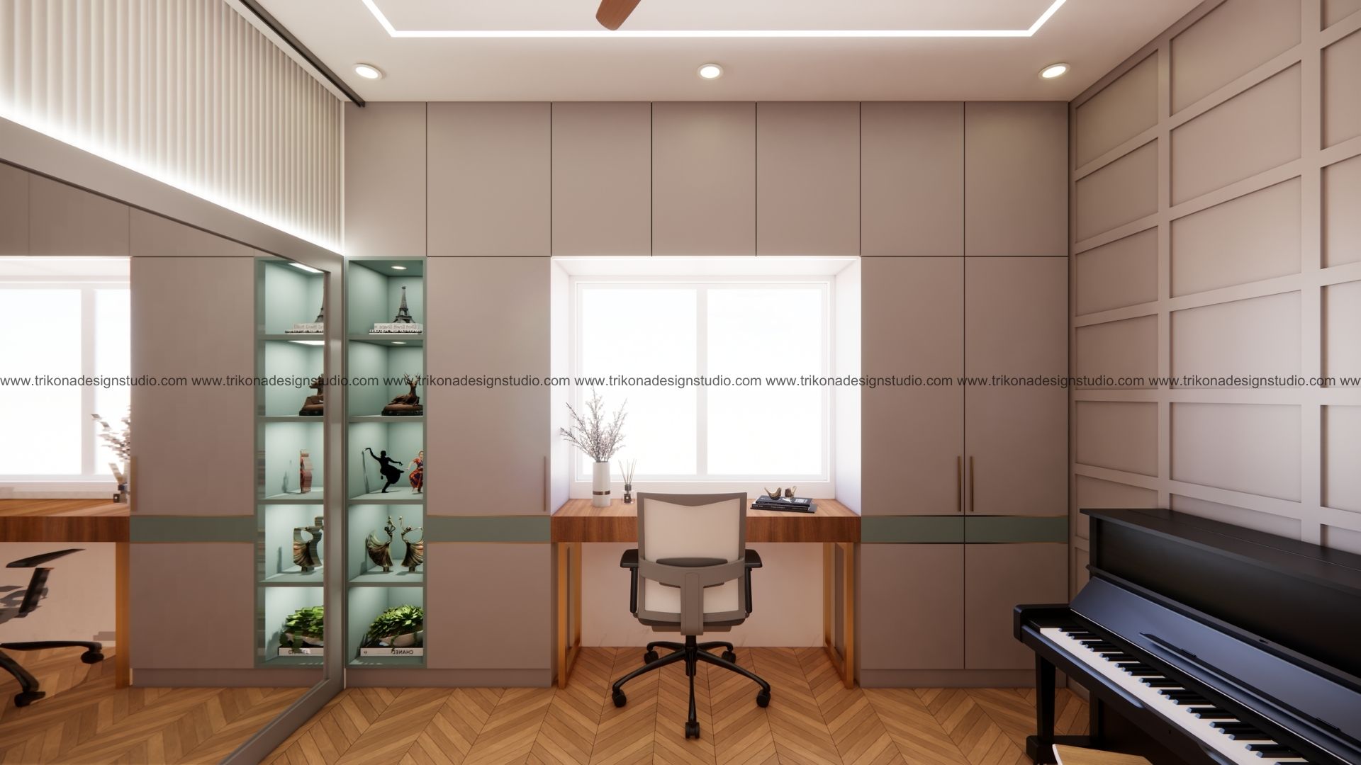 A warm and grounded 3BHK apartment designed for a doctor and his wife, both deeply passionate about Indian classical music and dance. The home embraces earthy tones and natural textures, creating an atmosphere of comfort and timelessness. The central highlight is a brick-clad wall that forms a striking backdrop for the beautifully crafted pooja unit—an area that radiates peace and devotion. Adding to the charm, a pair of elegant teakwood columns subtly demarcates the living area from the pooja and dining spaces, lending both structure and character. This home is a reflection of tradition meeting everyday liveability, where art and spirituality flow seamlessly into daily life.