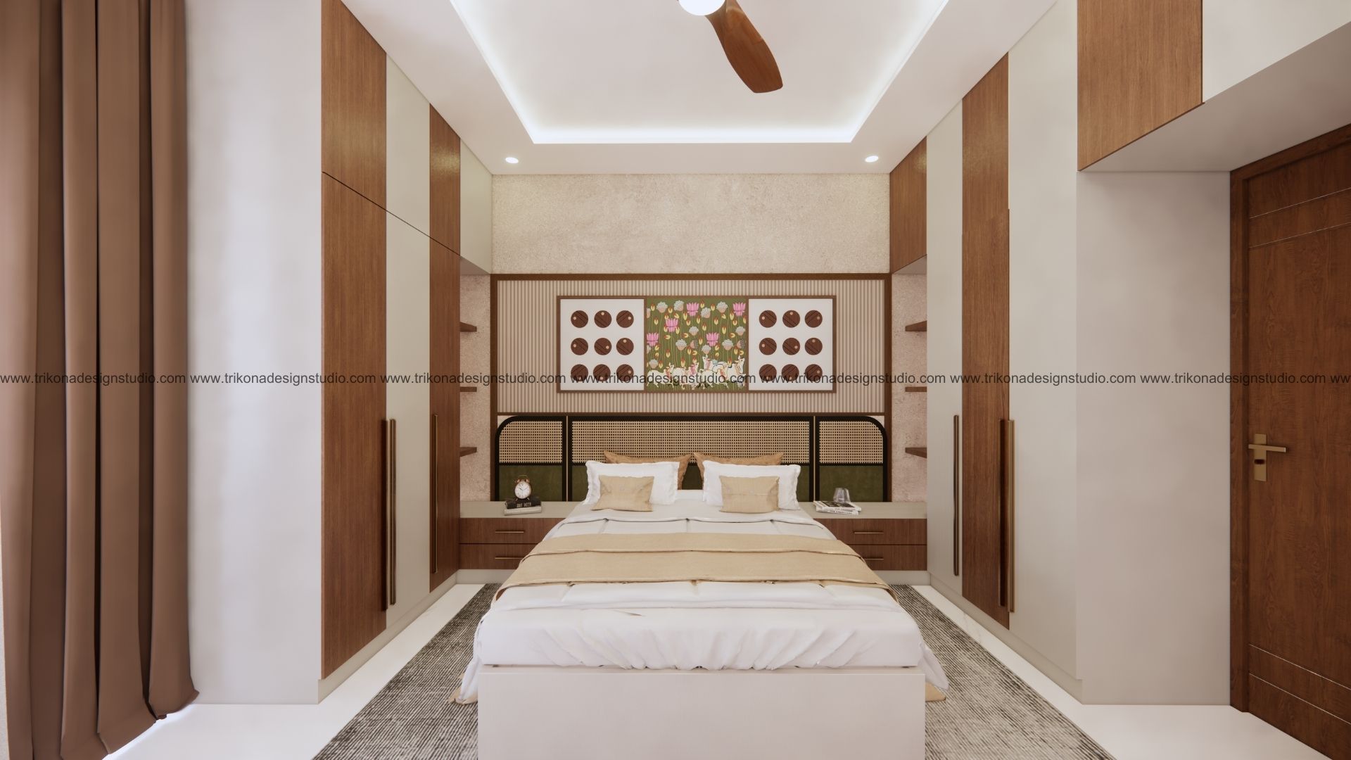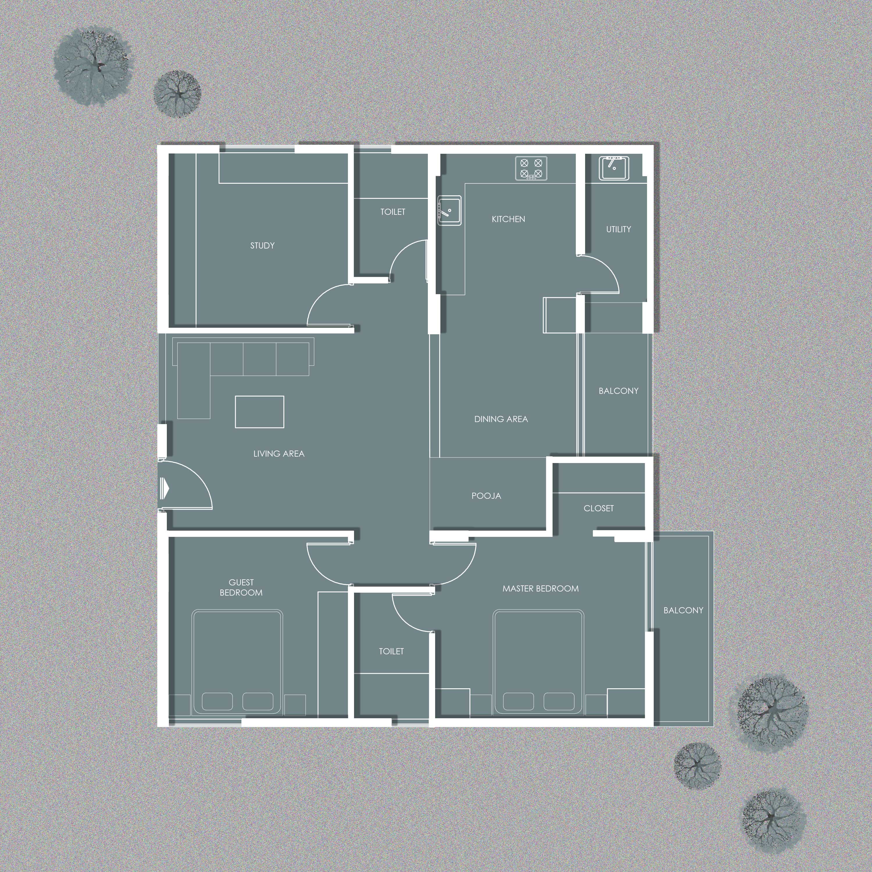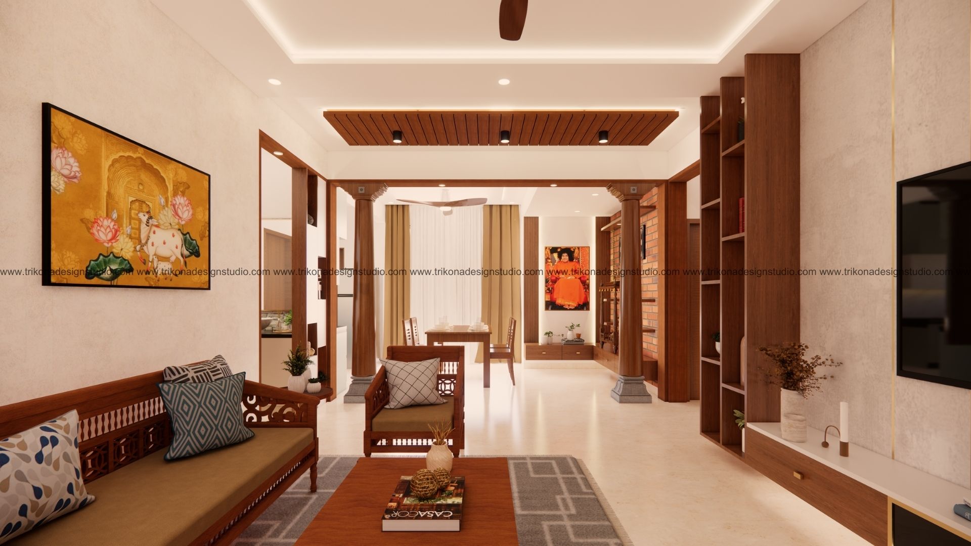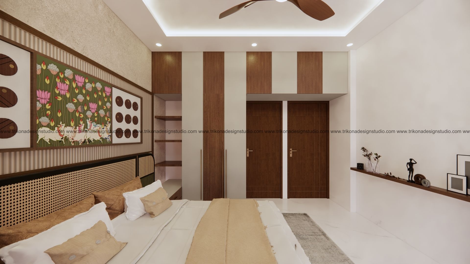 A warm and grounded 3BHK apartment designed for a doctor and his wife, both deeply passionate about Indian classical music and dance. The home embraces earthy tones and natural textures, creating an atmosphere of comfort and timelessness. The central highlight is a brick-clad wall that forms a striking backdrop for the beautifully crafted pooja unit—an area that radiates peace and devotion. Adding to the charm, a pair of elegant teakwood columns subtly demarcates the living area from the pooja and dining spaces, lending both structure and character. This home is a reflection of tradition meeting everyday liveability, where art and spirituality flow seamlessly into daily life.