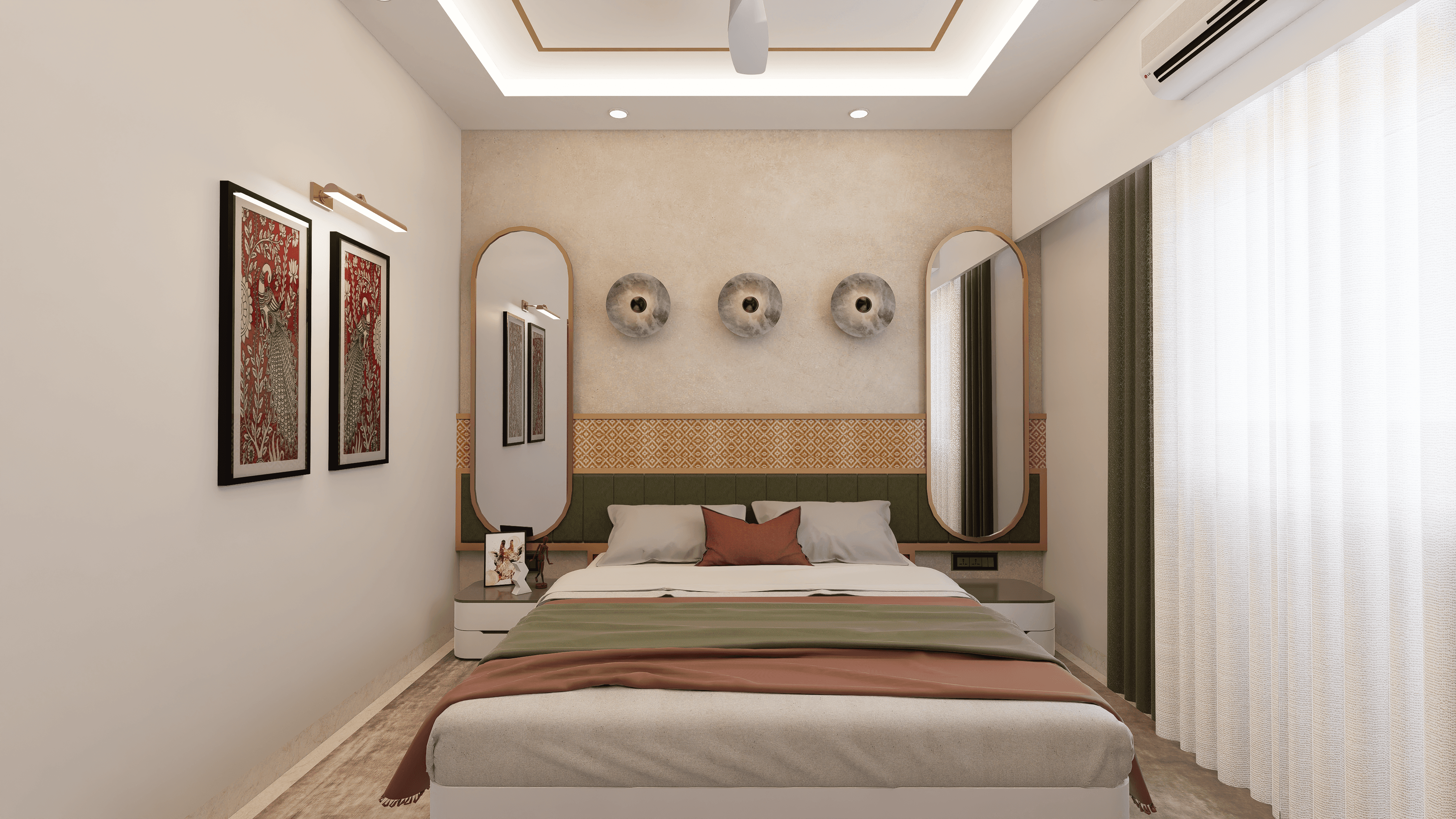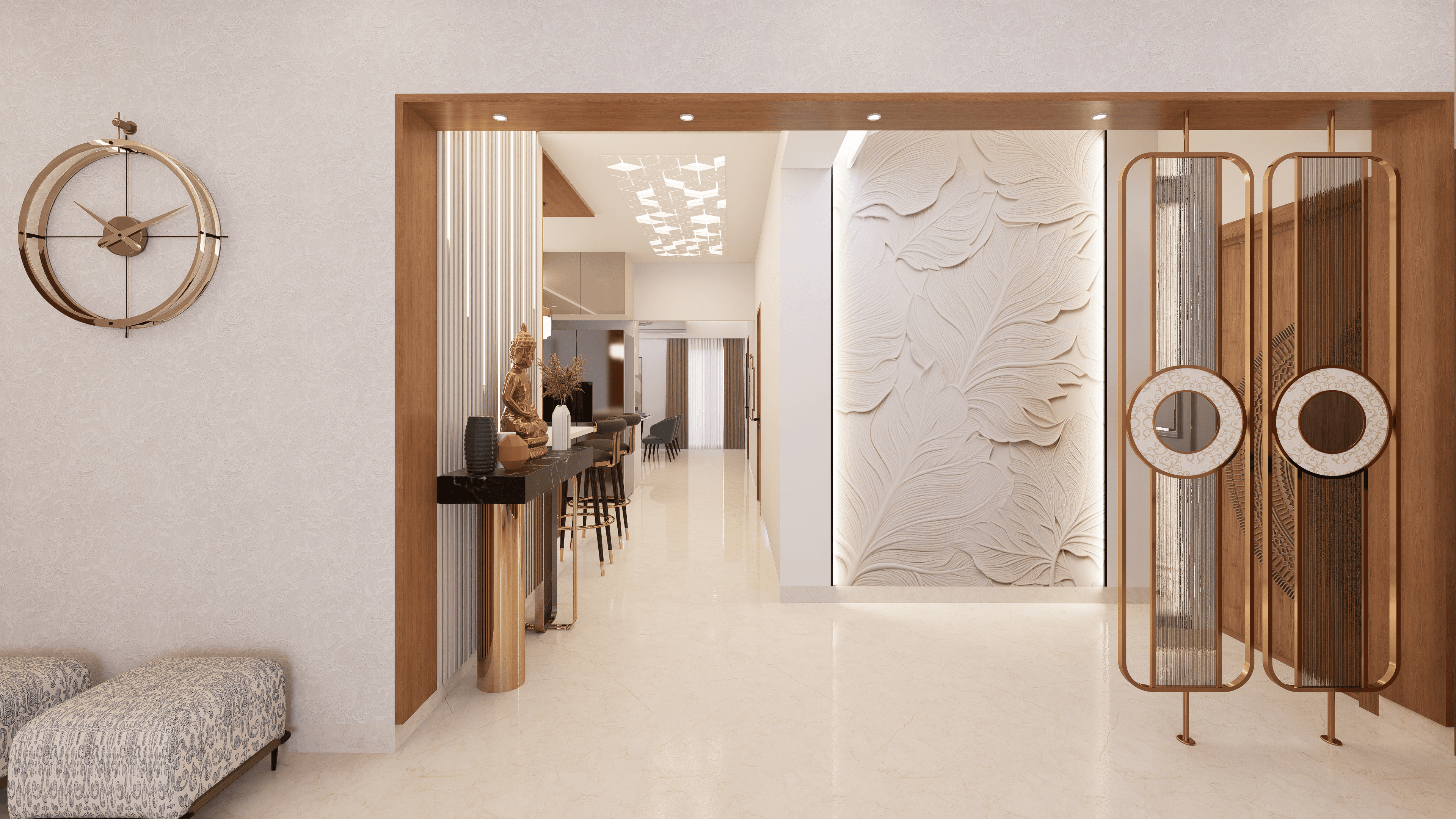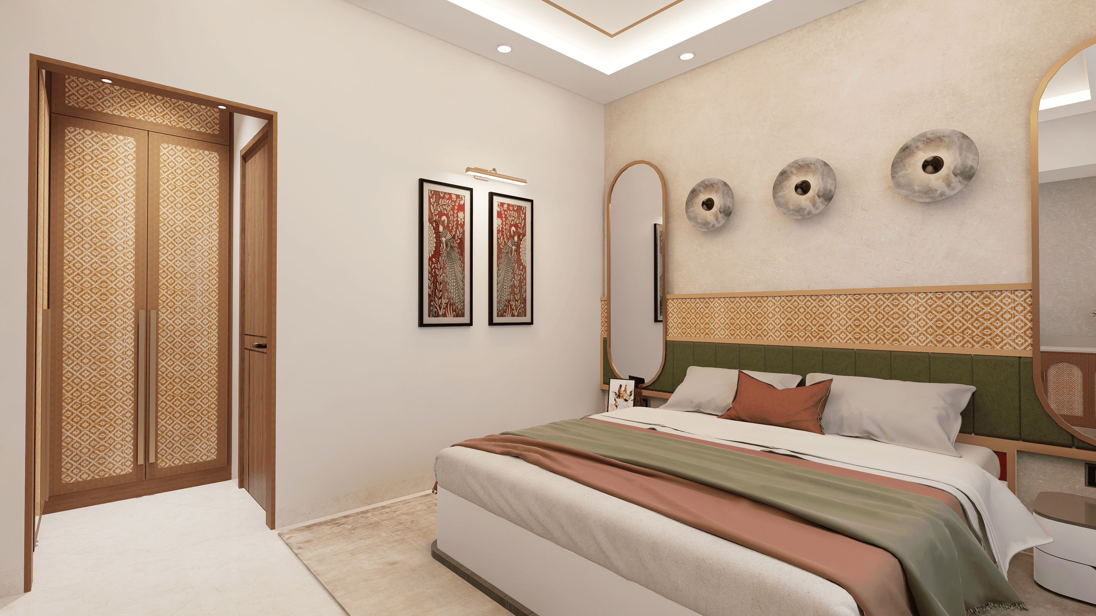 This elegant and stylish 4 BHK apartment in Bangalore showcases contemporary luxury with a personalized touch. Each bedroom tells its own story: the guest bedroom is lively and welcoming, the parents' bedroom embraces an earthy and classic vibe, while the master bedroom exudes warmth and elegance.