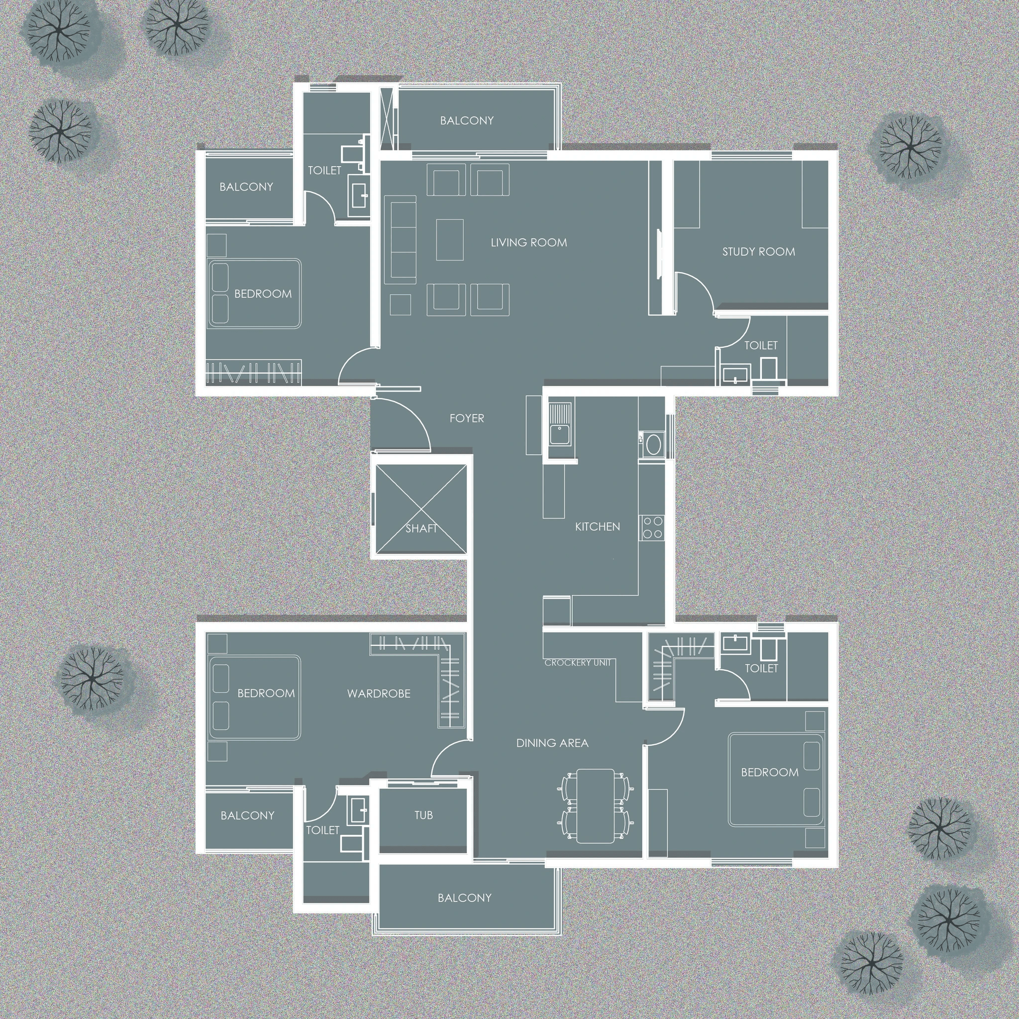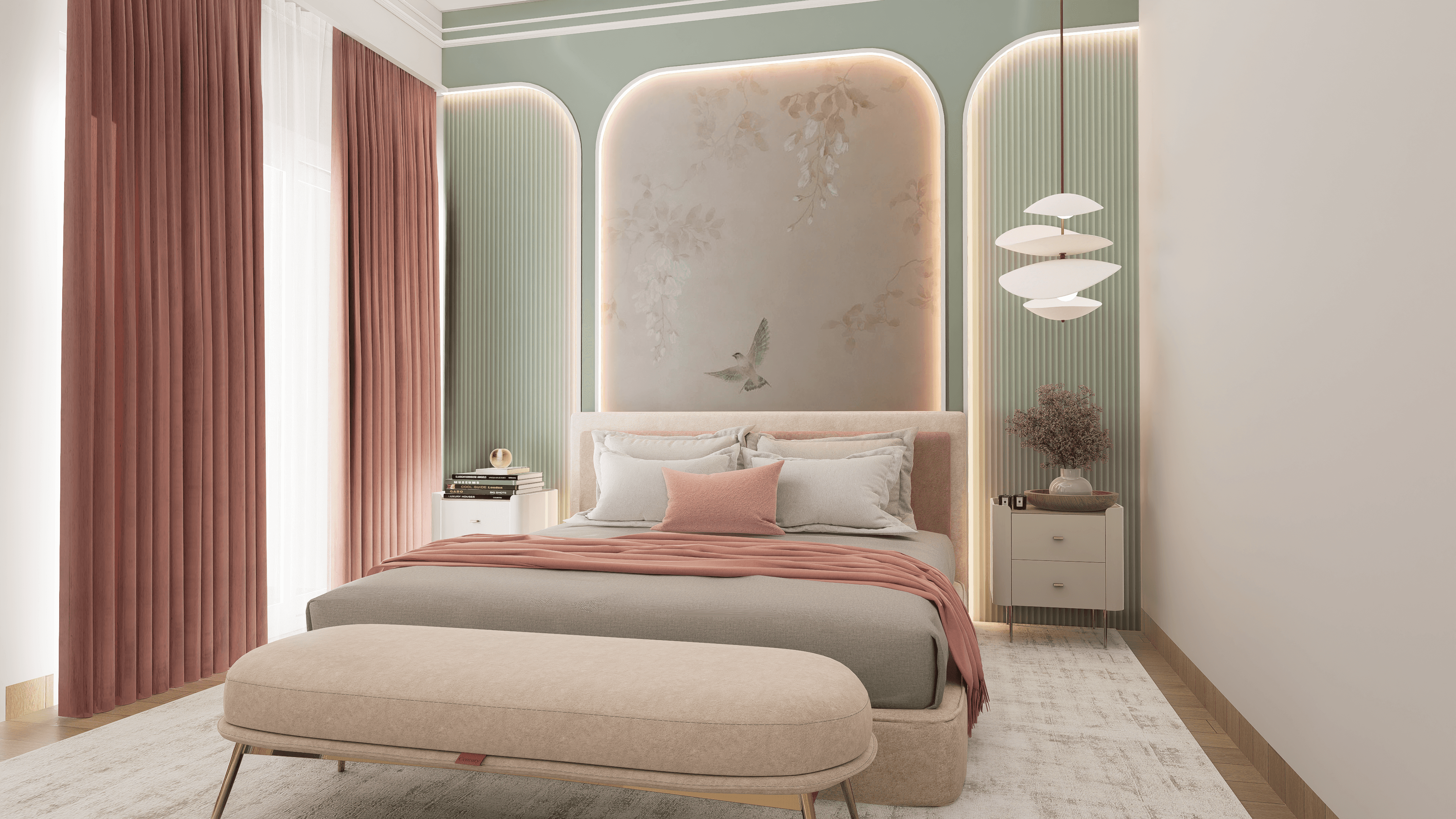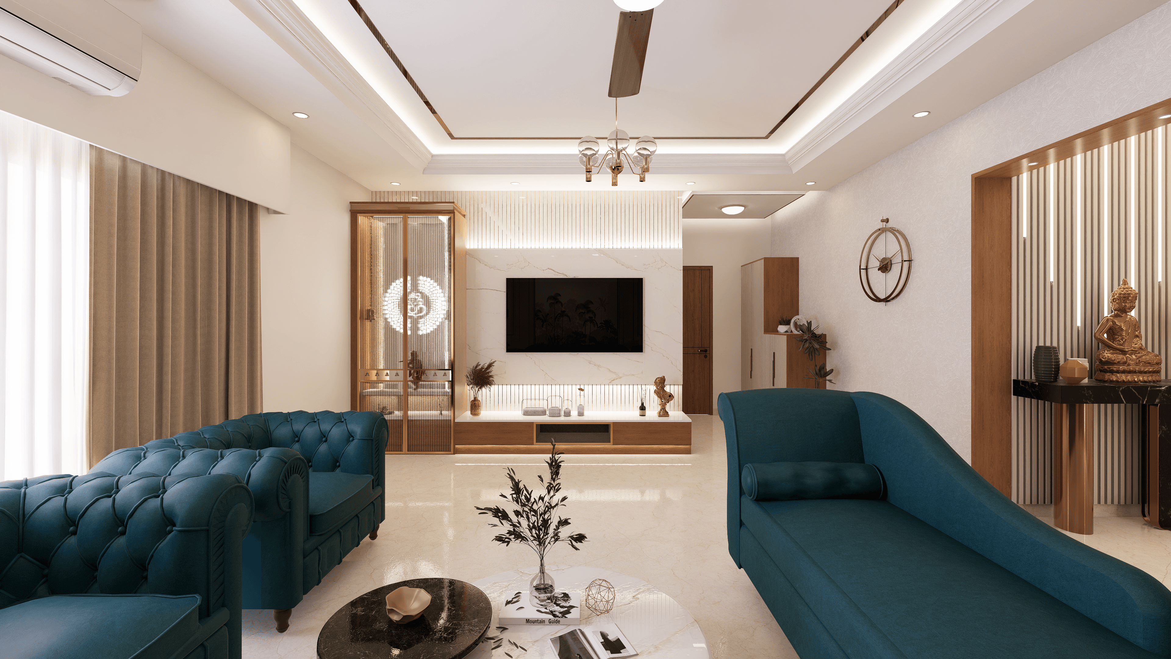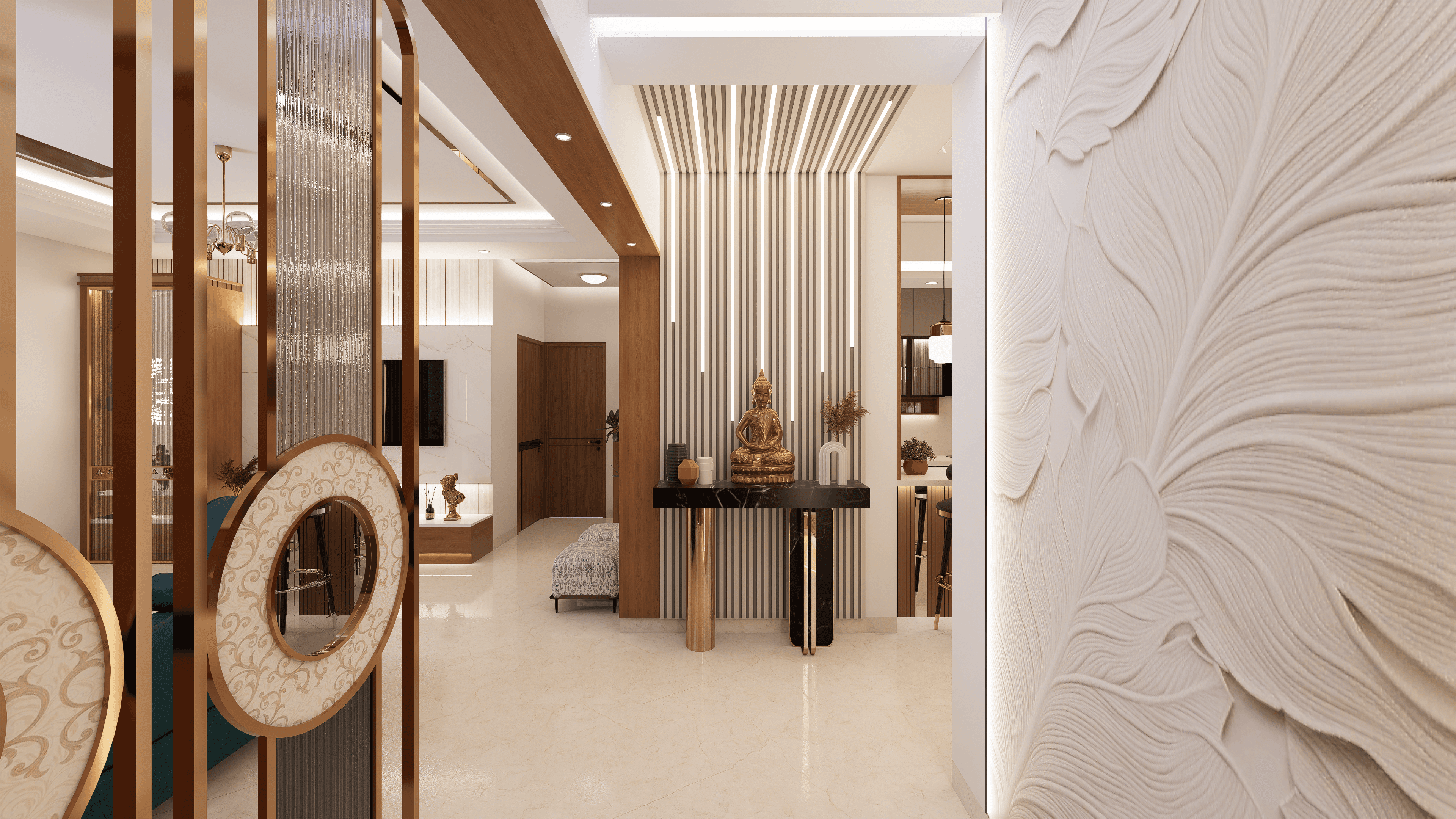 This elegant and stylish 4 BHK apartment in Bangalore showcases contemporary luxury with a personalized touch. Each bedroom tells its own story: the guest bedroom is lively and welcoming, the parents' bedroom embraces an earthy and classic vibe, while the master bedroom exudes warmth and elegance.