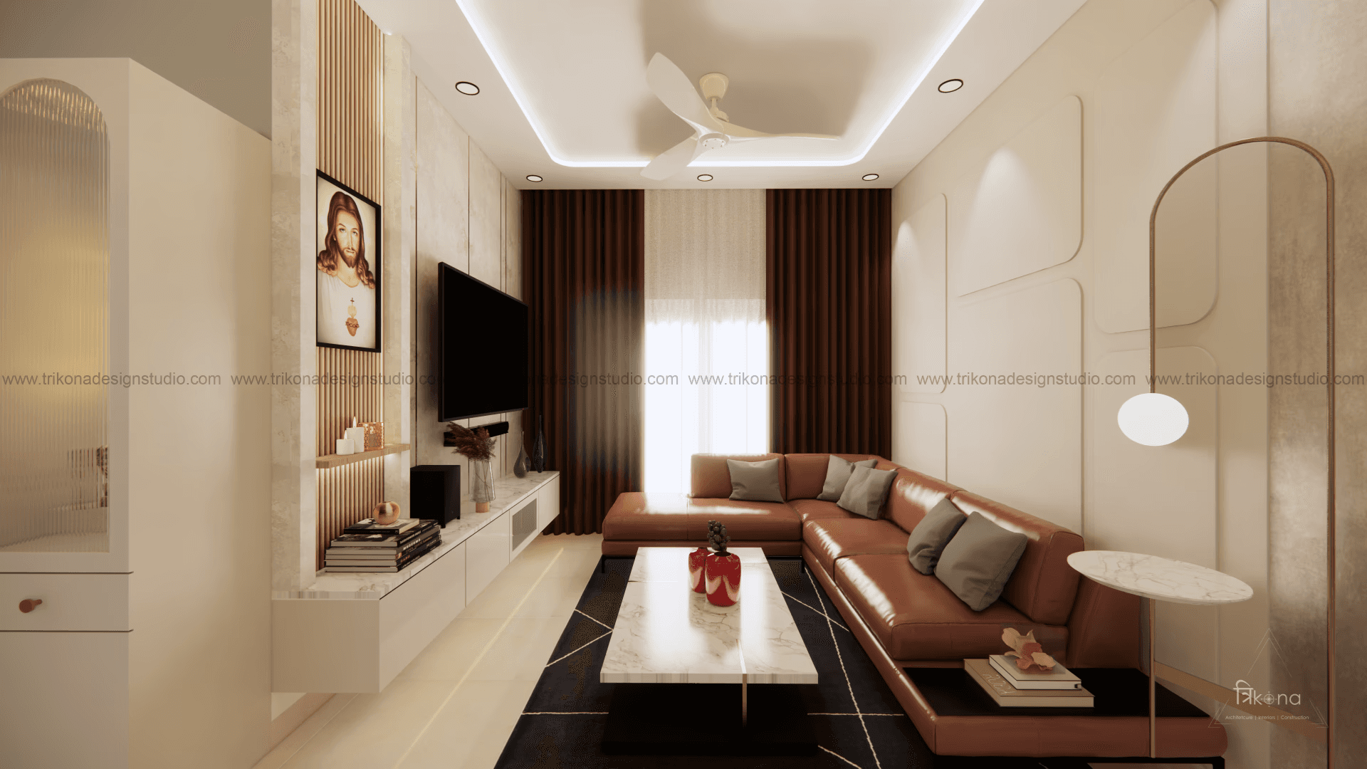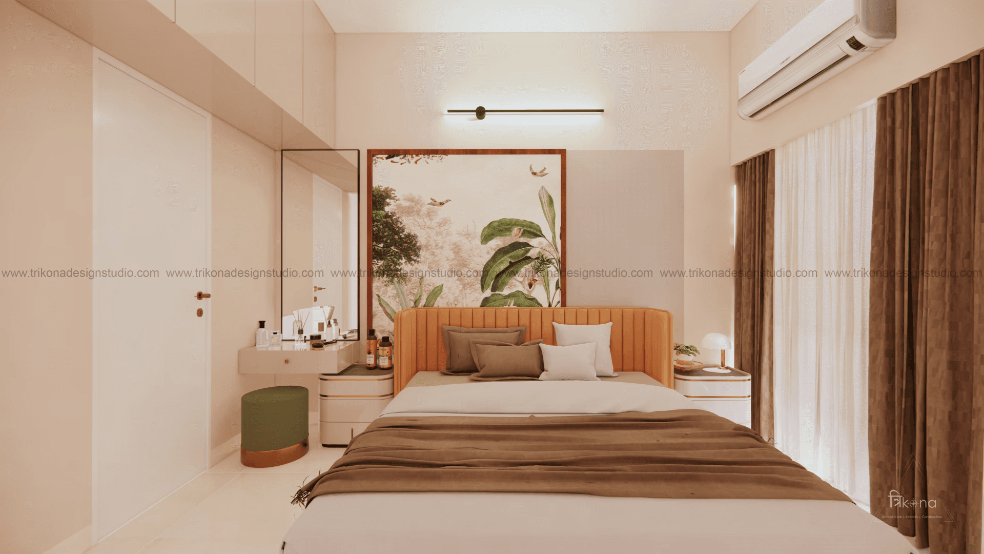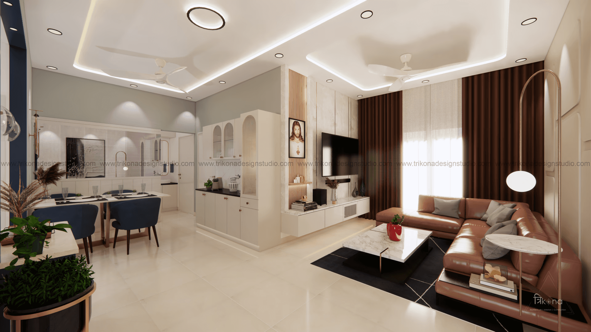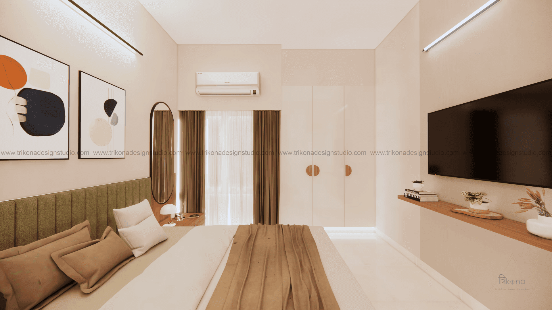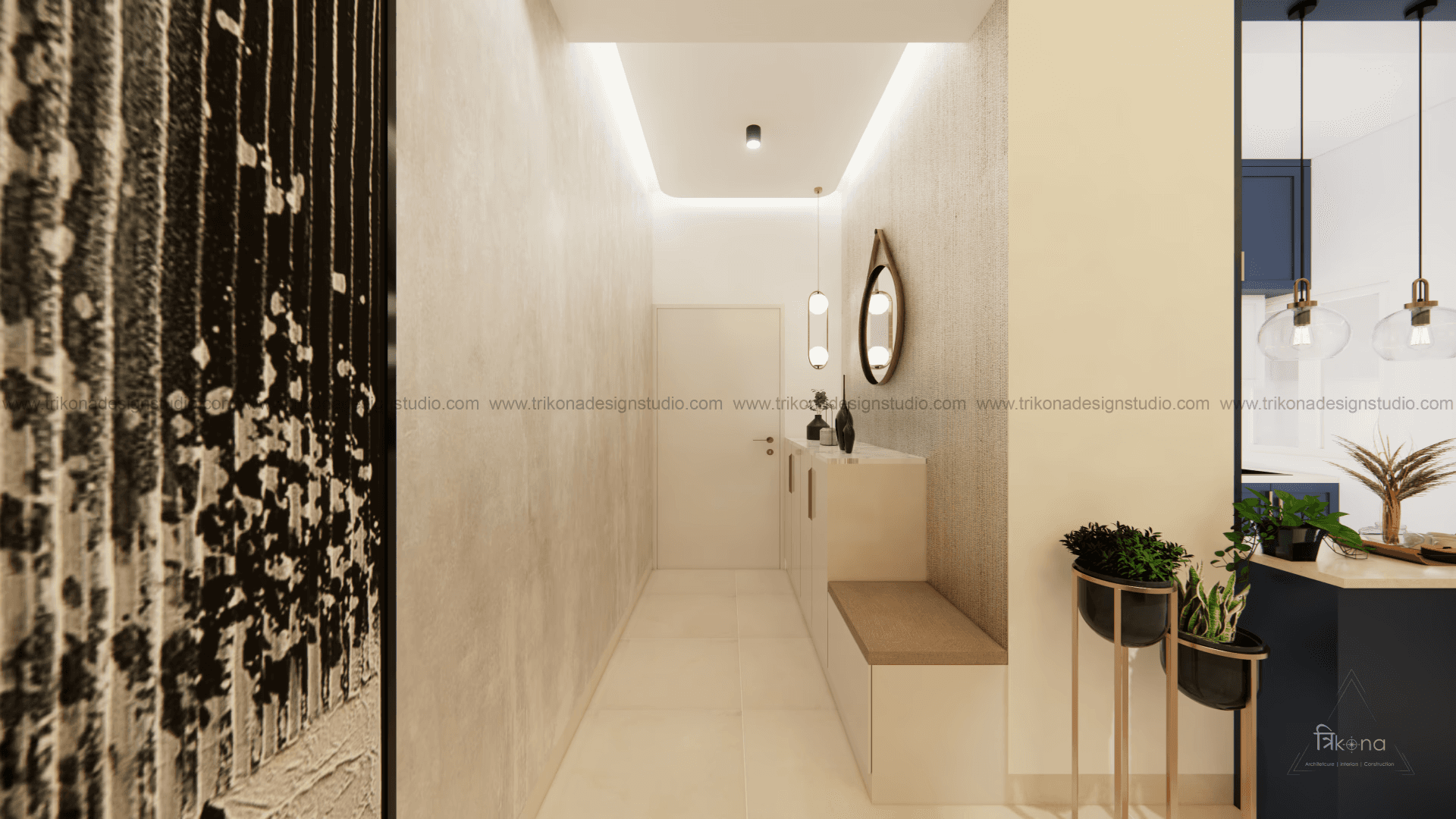 Welcome to our stunning apartment in Bangalore, where minimal and French-style interiors come together to create a harmonious living space. The entire house is designed to be light and airy, evoking a sense of tranquility and openness. In the living room, an off-white wall panel with rounded rectangles creates a unique pattern, enhancing the space's visual appeal. The T.V unit doubles as an altar on, providing a serene focal point. Step into the beautiful, blue French country-style kitchen, finished in P.U., and be captivated by its elegant charm. The crockery cum pooja unit features three arches with fluted glass on its shutters, adding a touch of sophistication and functionality. Retreat to the master bedroom, adorned with earth palette tones, emanating warmth and a welcoming ambiance. A capsule mirror on one of its sides adds an artistic touch. Experience the perfect blend of minimalism and French style in our project, aptly named “French Flair”.