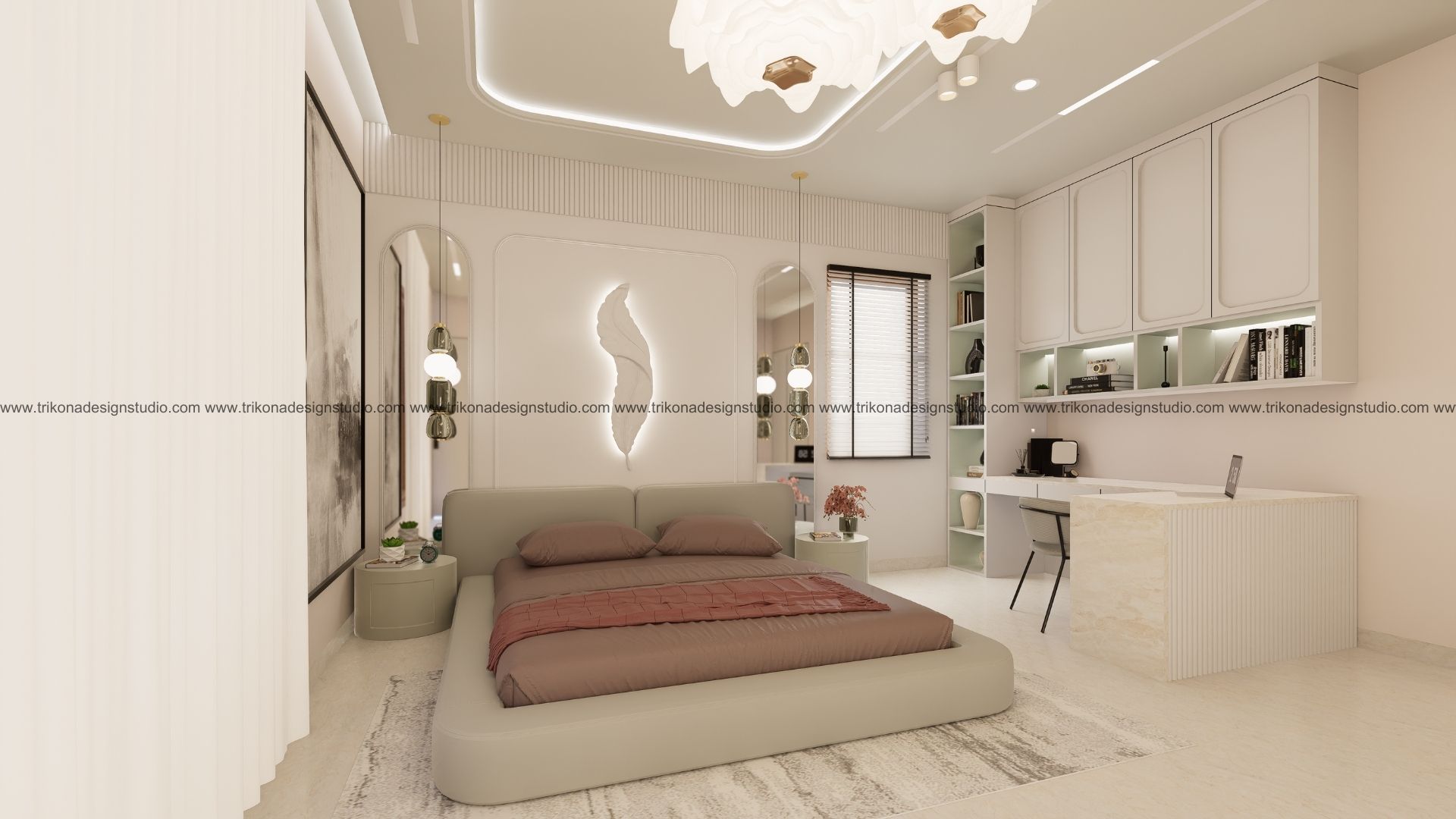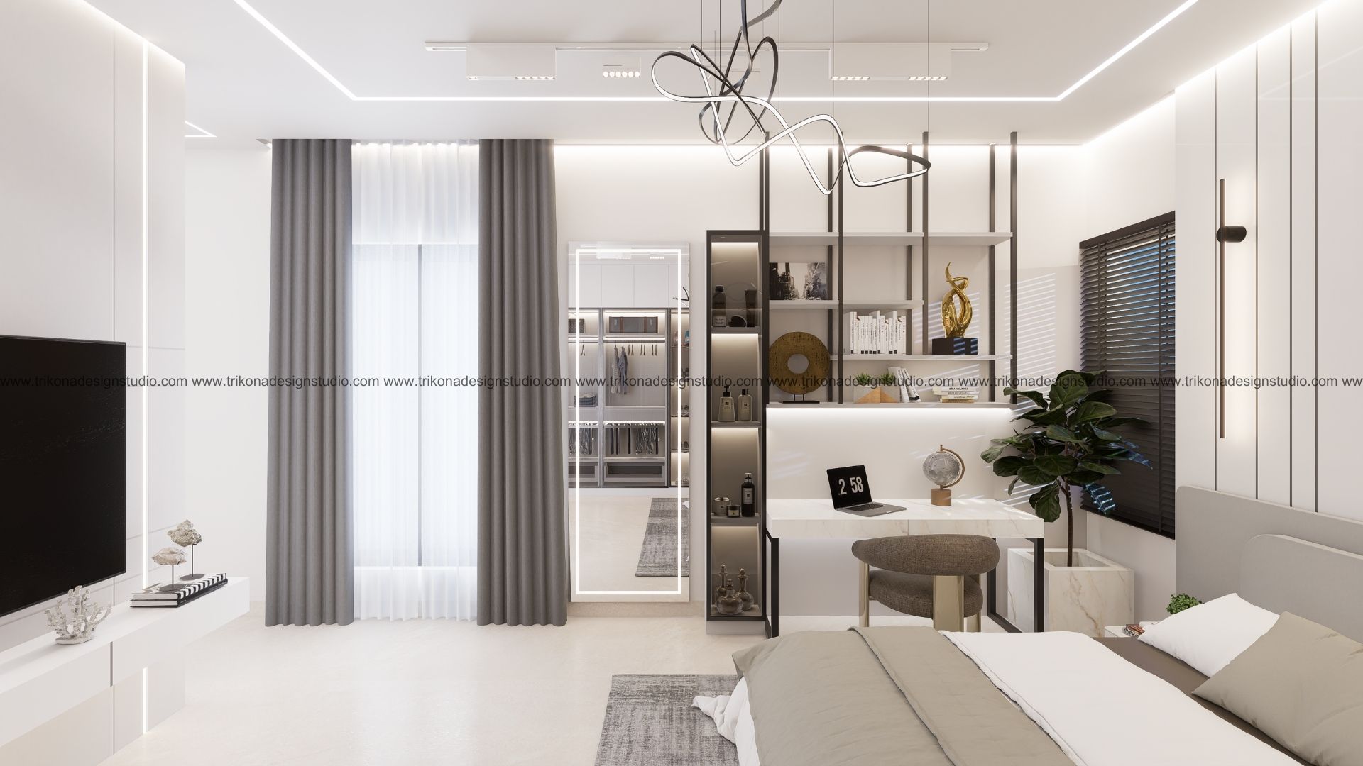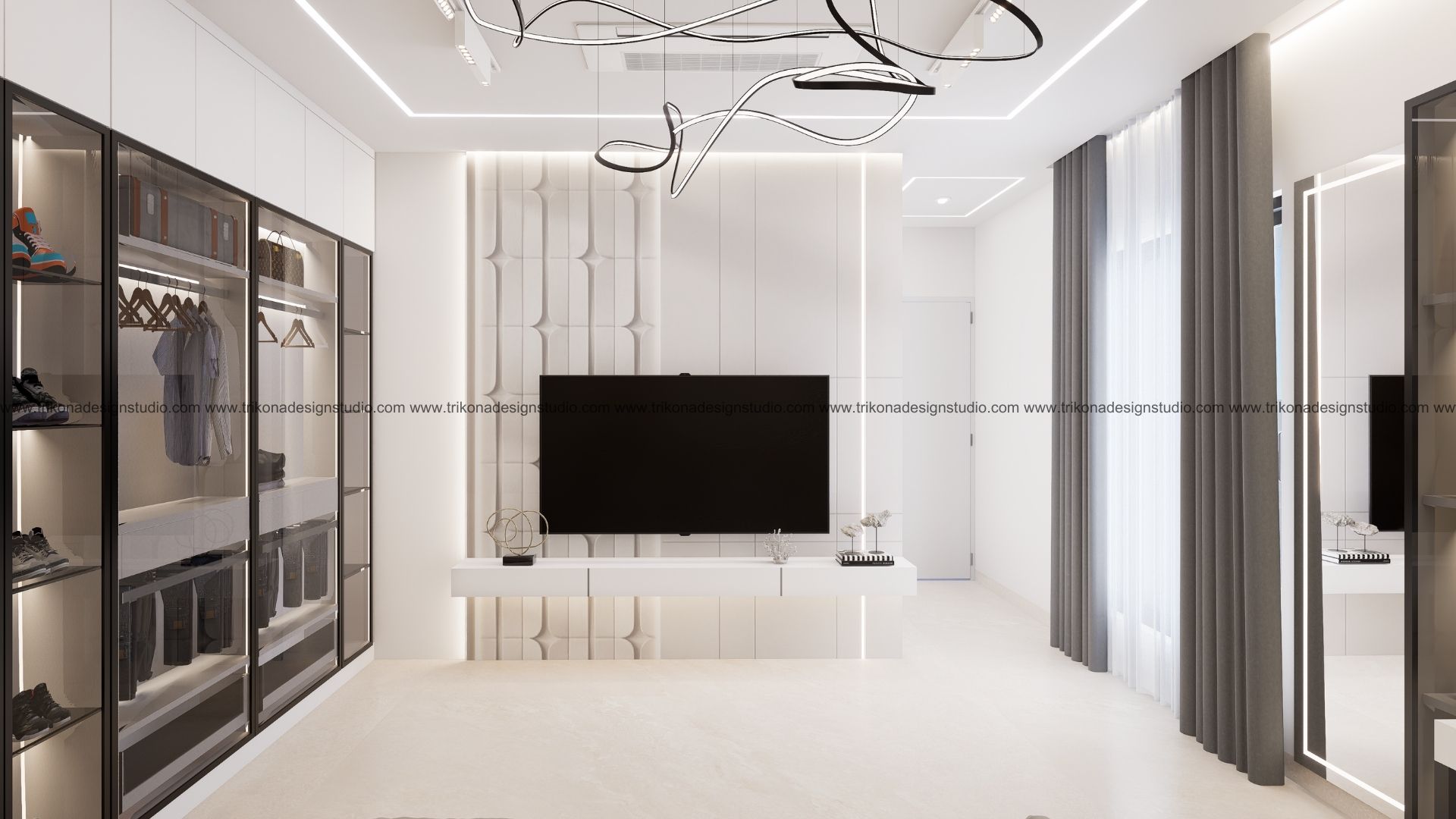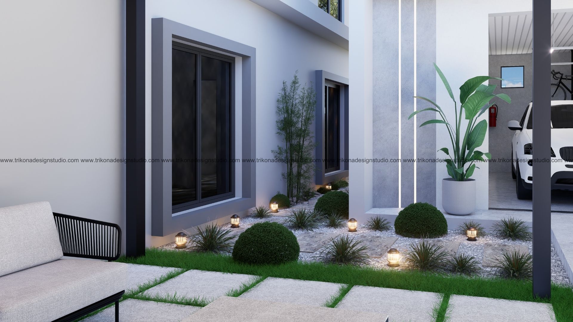 On the adjoining plot, a landscaped garden offers the family an outdoor haven, complemented by a closed garage for the client’s collection of luxury cars. Above it, the first floor houses his office, seamlessly integrated into the home’s design ethos. Bound together by an all-white palette and refined detailing, the villa and its landscaped extension form a cohesive estate—radiant, serene, and deeply personal.