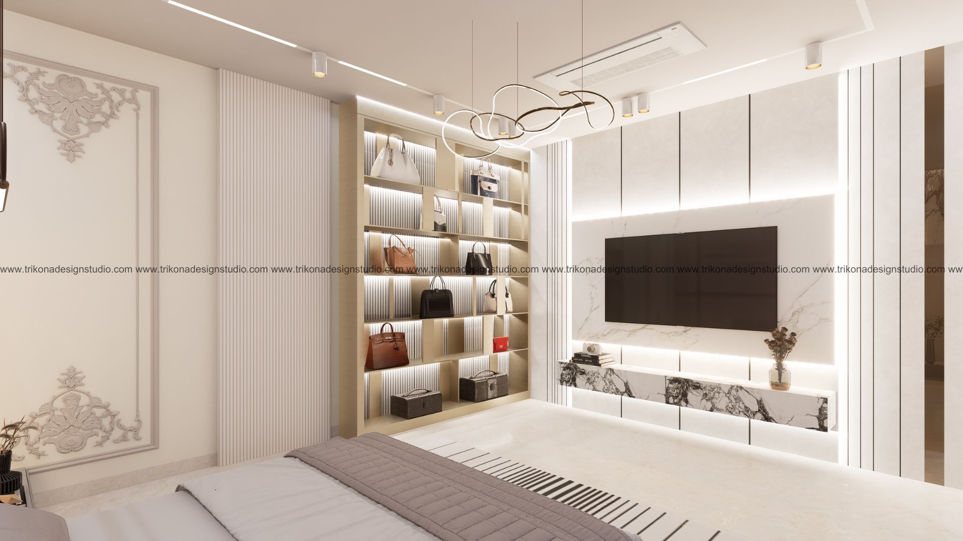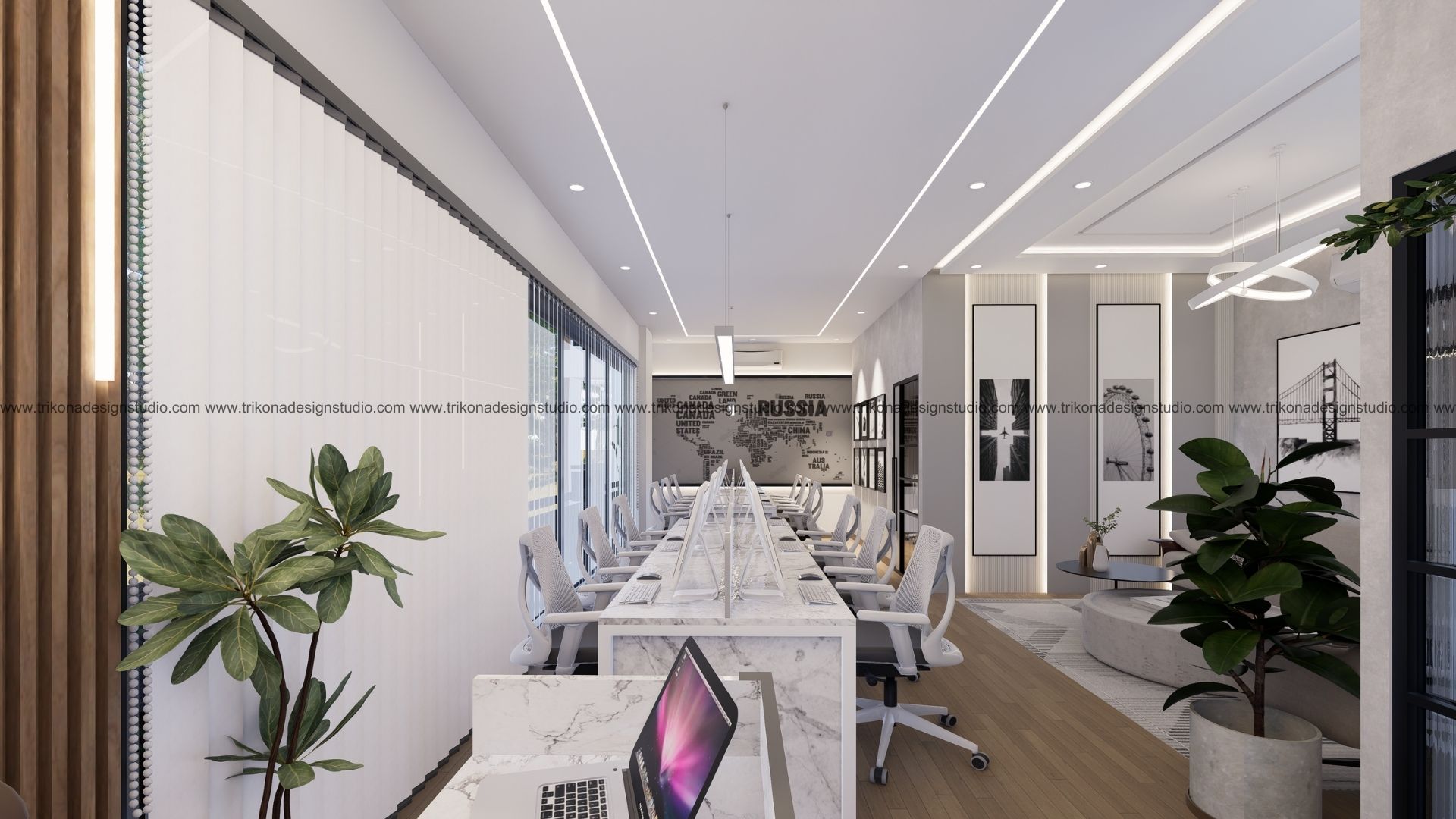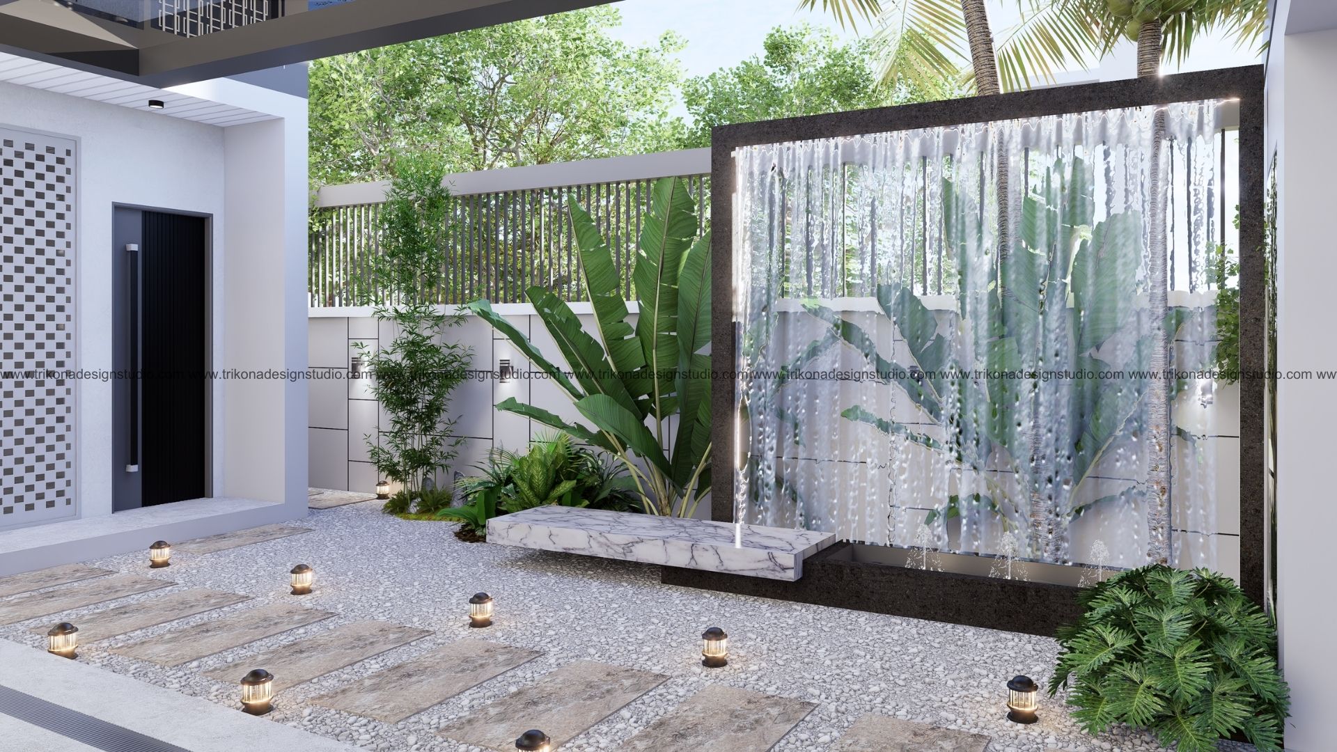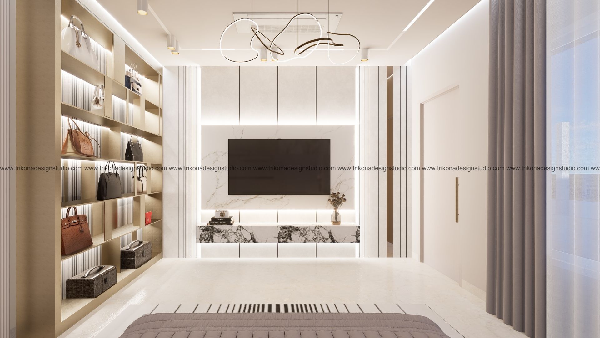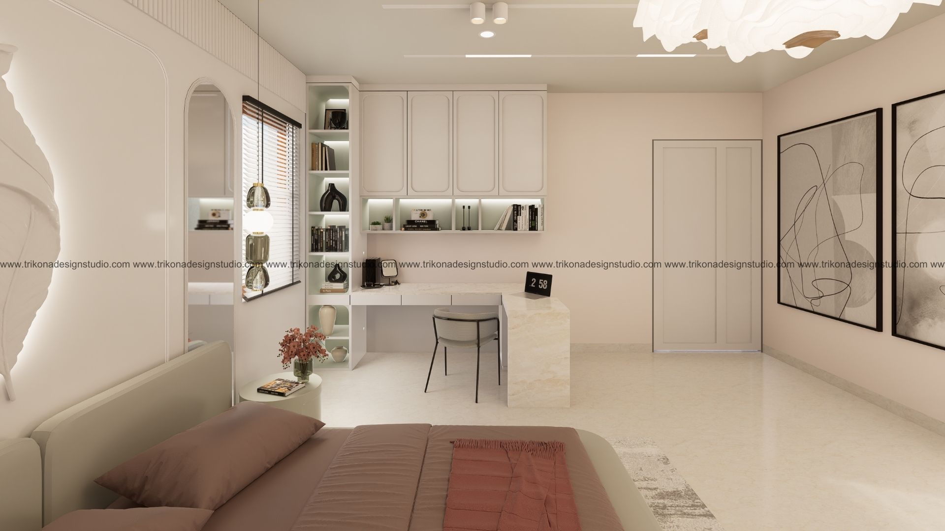 On the adjoining plot, a landscaped garden offers the family an outdoor haven, complemented by a closed garage for the client’s collection of luxury cars. Above it, the first floor houses his office, seamlessly integrated into the home’s design ethos. Bound together by an all-white palette and refined detailing, the villa and its landscaped extension form a cohesive estate—radiant, serene, and deeply personal.
