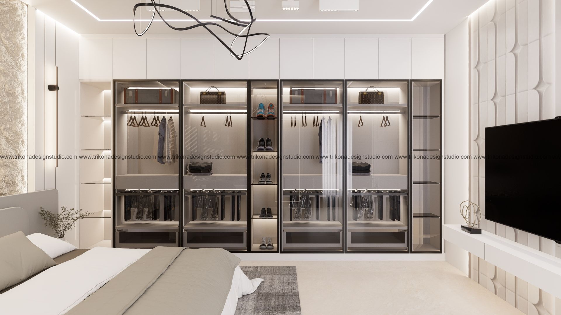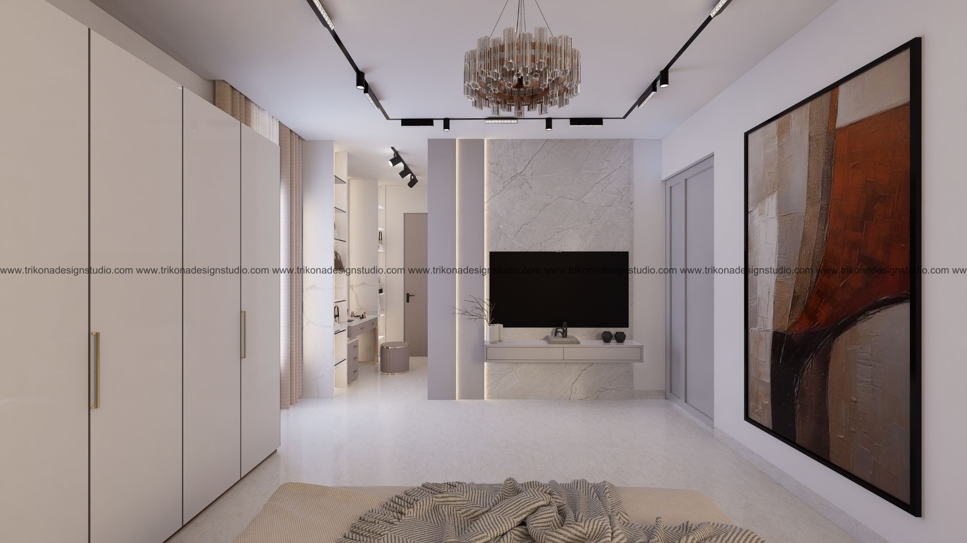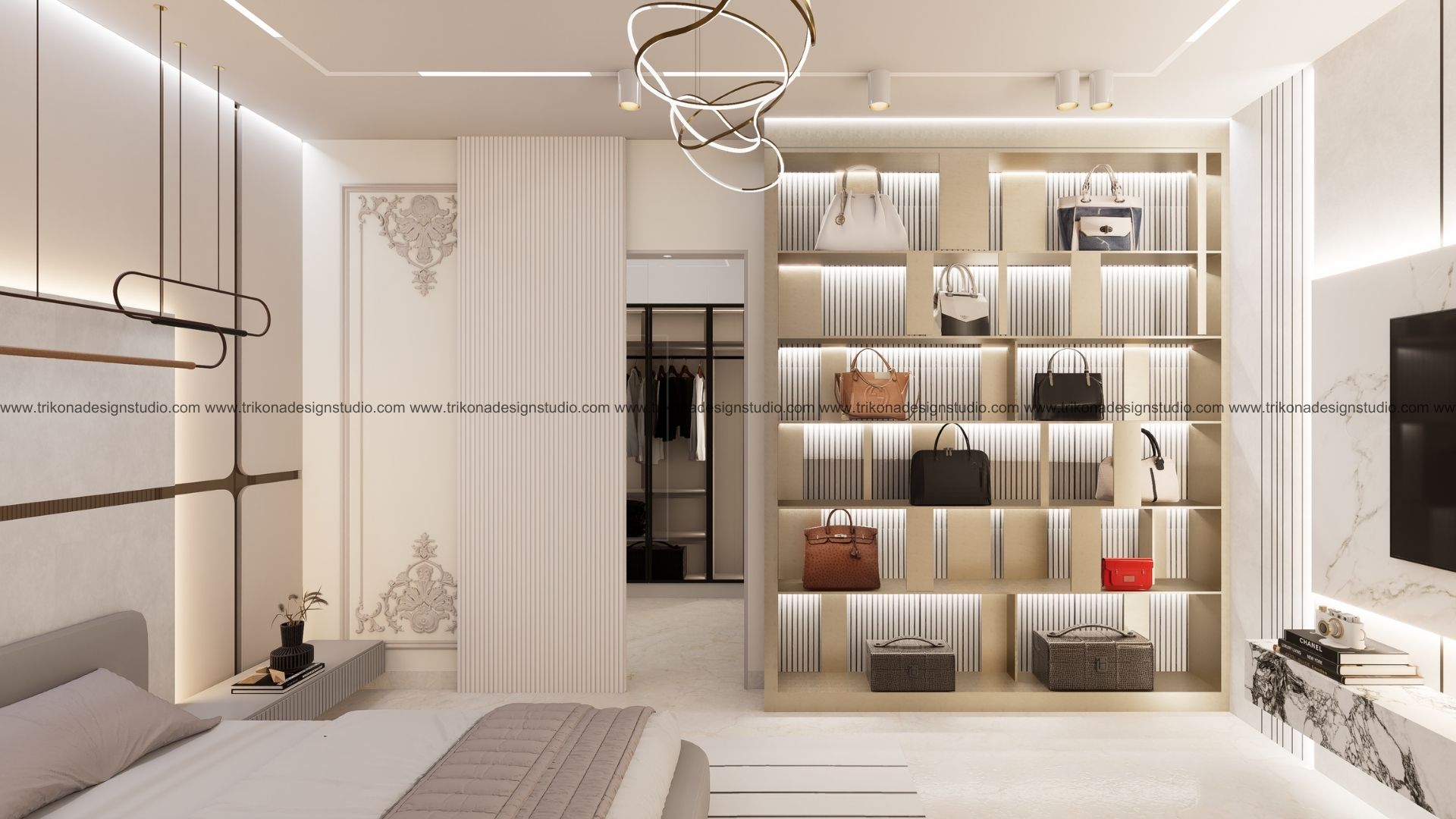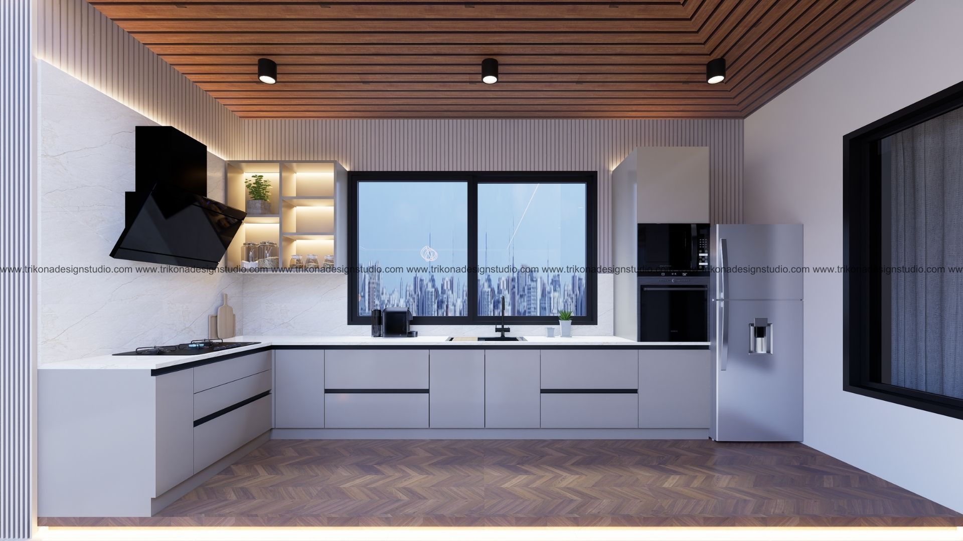 On the adjoining plot, a landscaped garden offers the family an outdoor haven, complemented by a closed garage for the client’s collection of luxury cars. Above it, the first floor houses his office, seamlessly integrated into the home’s design ethos. Bound together by an all-white palette and refined detailing, the villa and its landscaped extension form a cohesive estate—radiant, serene, and deeply personal.