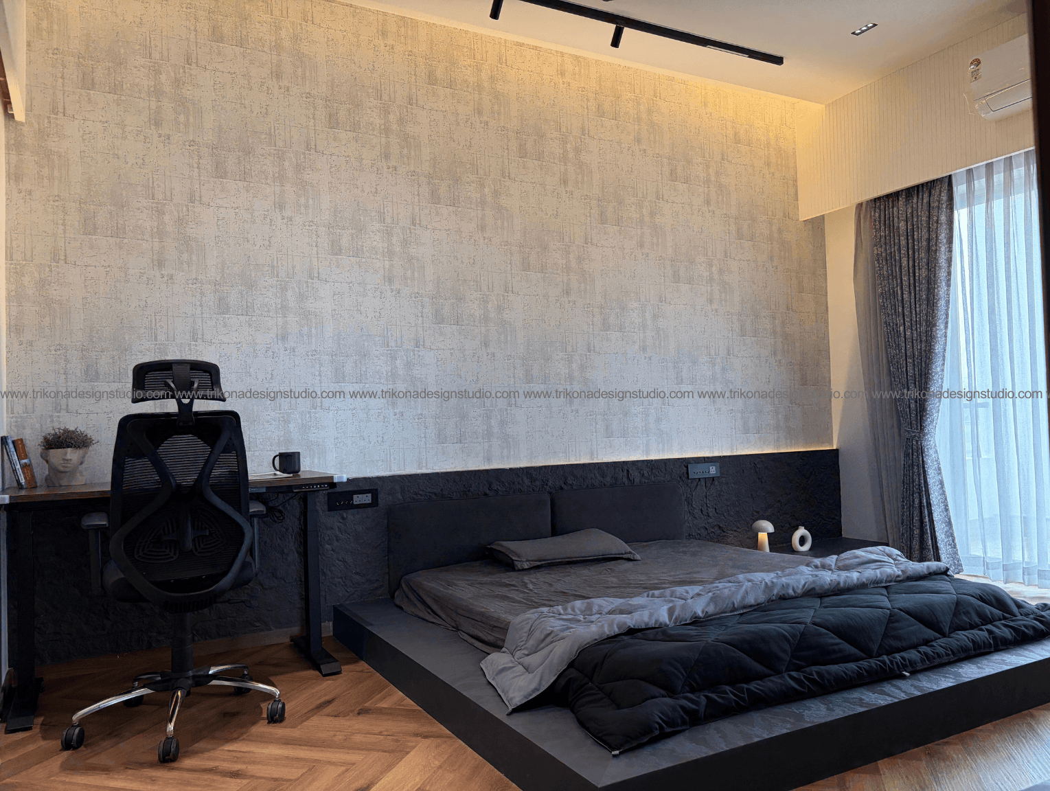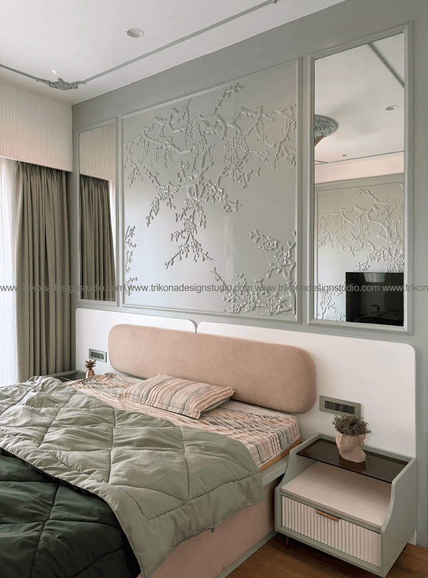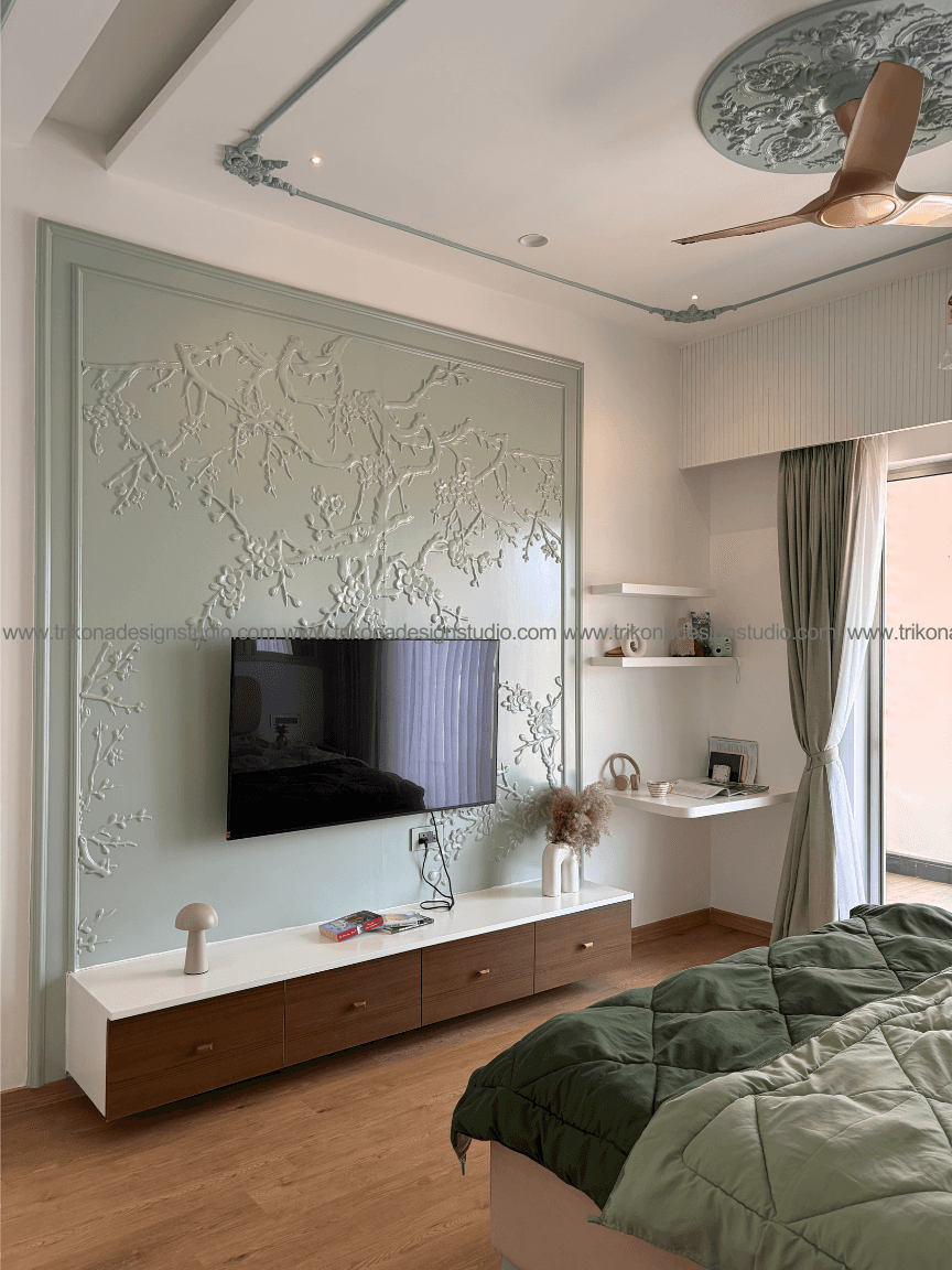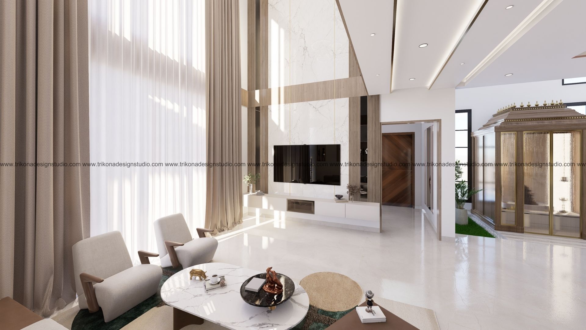 At the heart of the home sits a beautifully detailed pooja space, crafted as a tranquil sanctuary of devotion—its design balancing tradition with modern finesse.