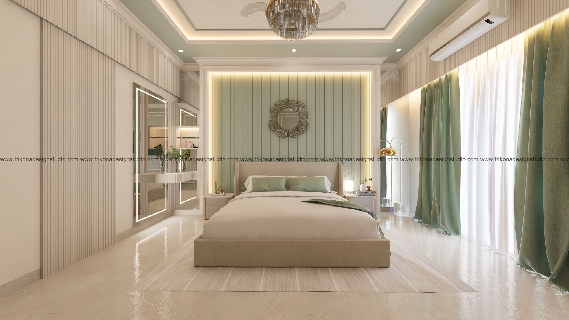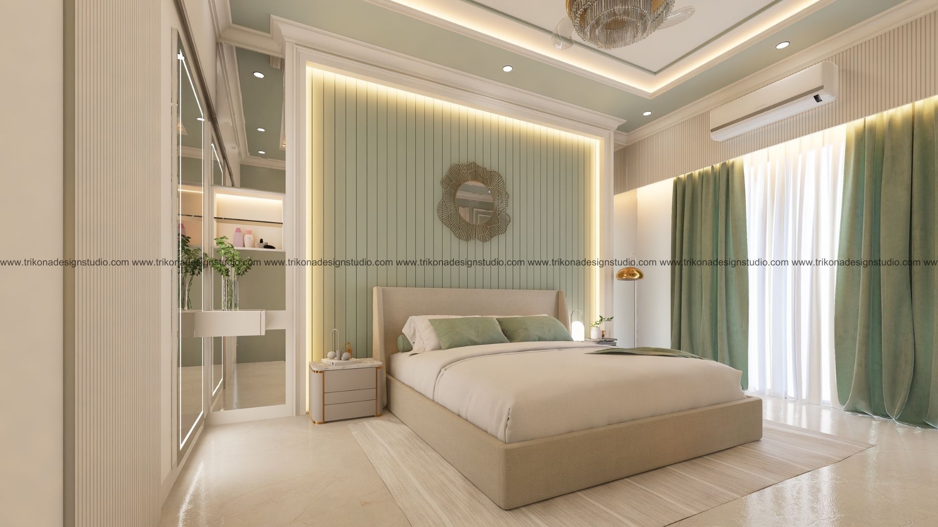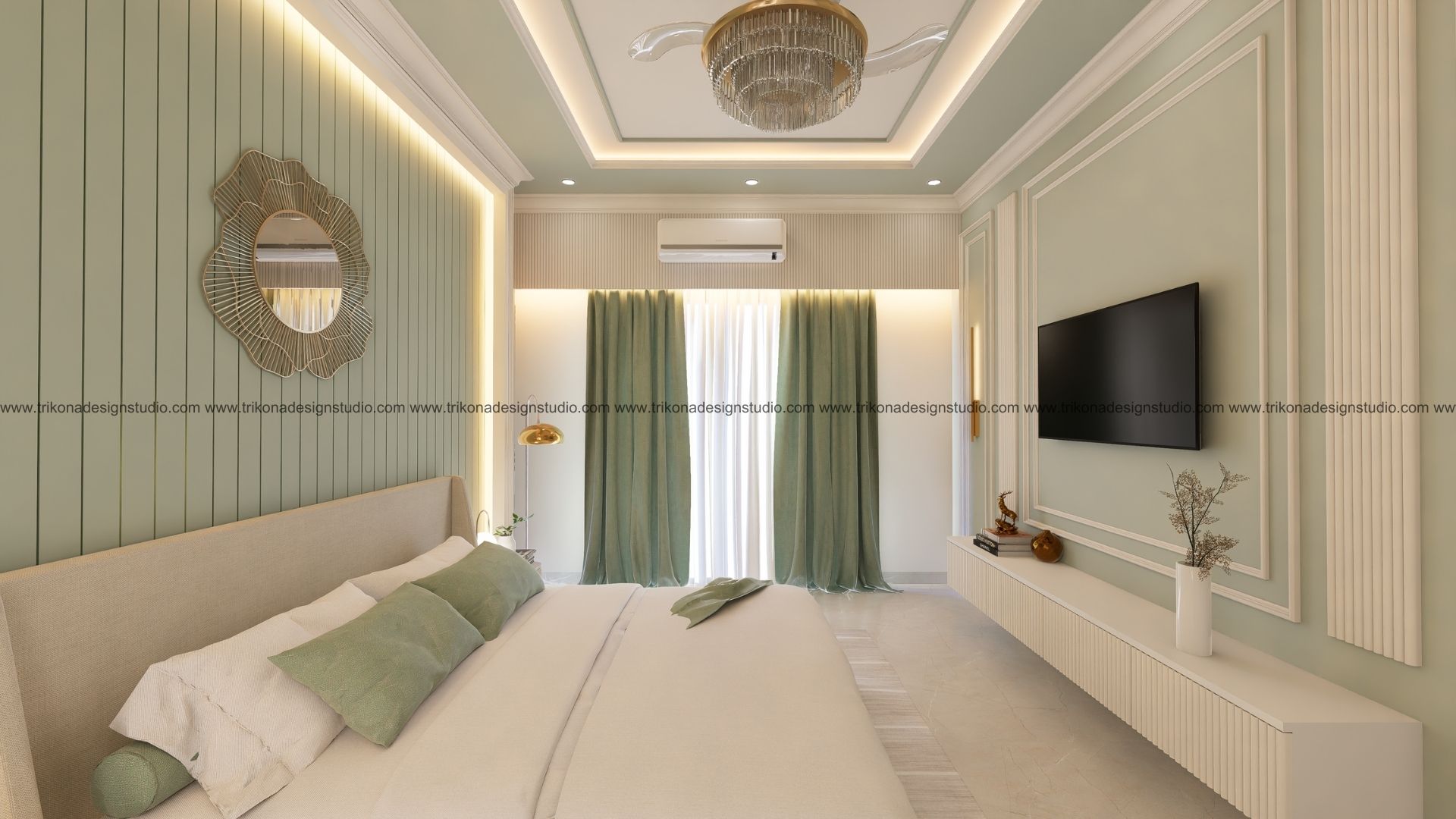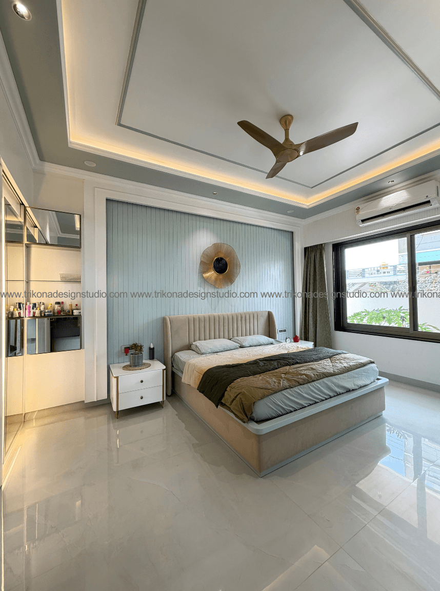 This G+1 villa is a celebration of light, elegance, and togetherness. The ground floor unfolds from a welcoming foyer into a soaring double-height living room, where natural light floods the space, highlighting a refined blend of stone, wood, and muted tones. Flowing seamlessly into the dining area and kitchen, the layout is designed for both family connection and effortless entertaining. The ground floor also accommodates a serene master suite and a warm guest bedroom, ensuring comfort for both residents and visitors.